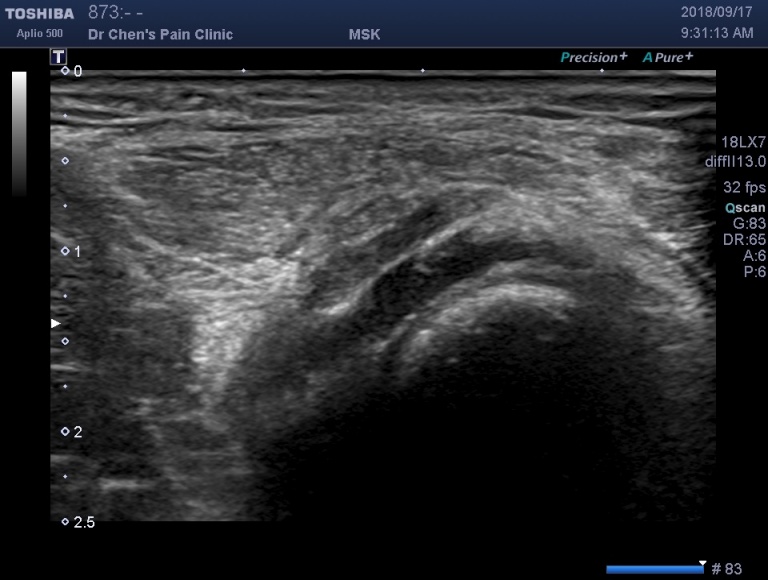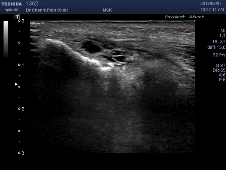 在超音波底下,可以藉由注射藥物,發現肌腱斷裂處。